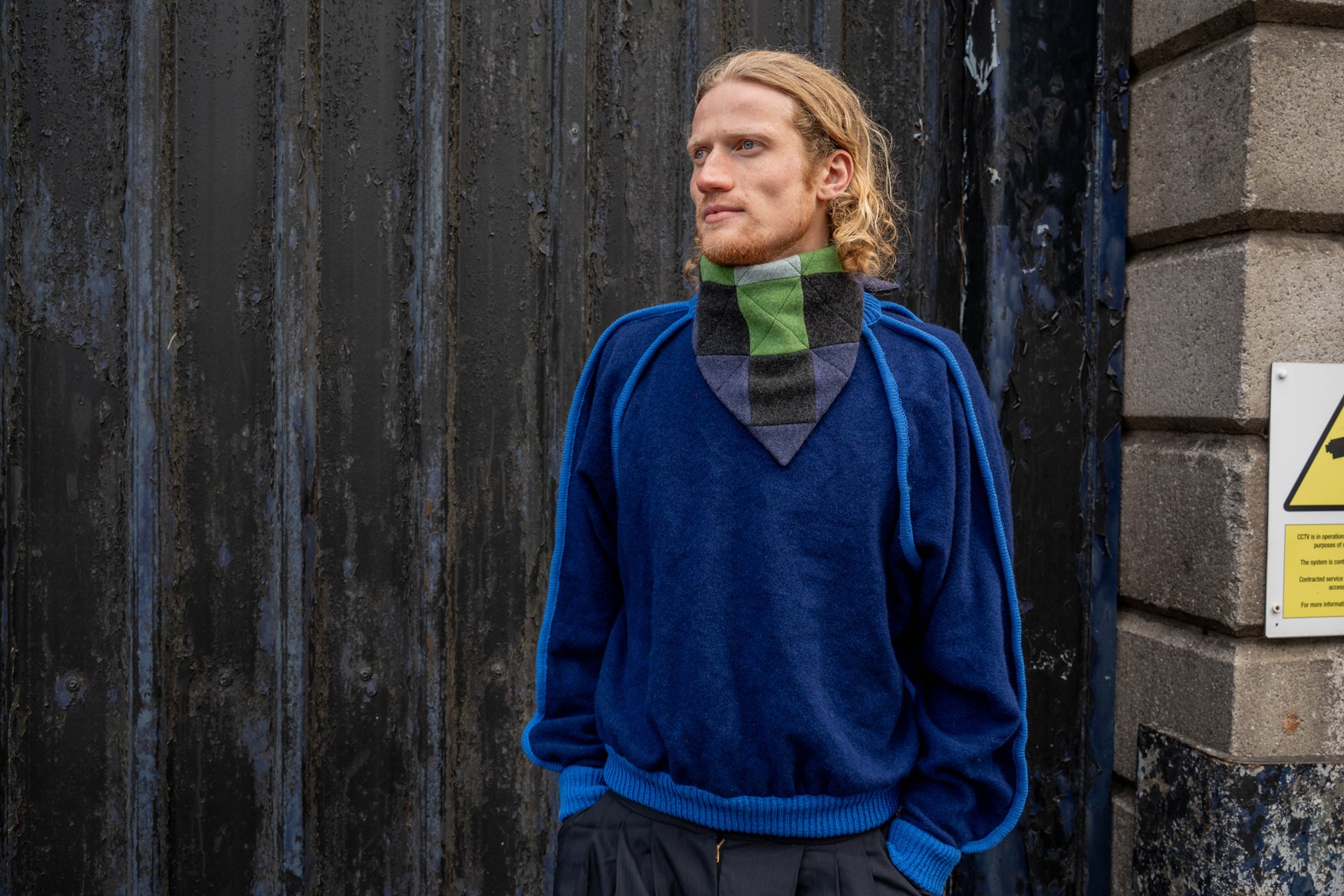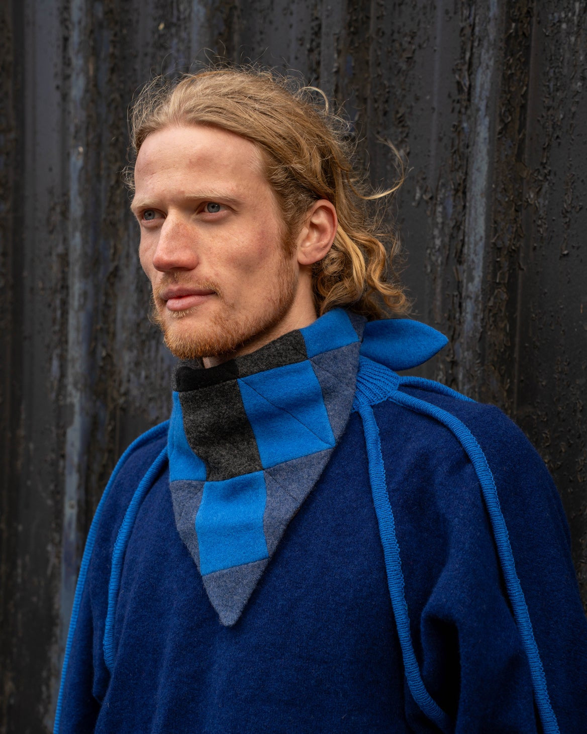 A limited collection of unique neck triangles in collaboration with Toni and Anna. These items are all one of one, made using knitted wool offcuts from Anna combined in new ways by Toni to create 10 unique patchwork scarfs. The material is 100% lambswool on one side combined with deadstock material found in secondhand shops across Europe on the other and a hand embroidered logo. Machine wash on woolcycle on cold.